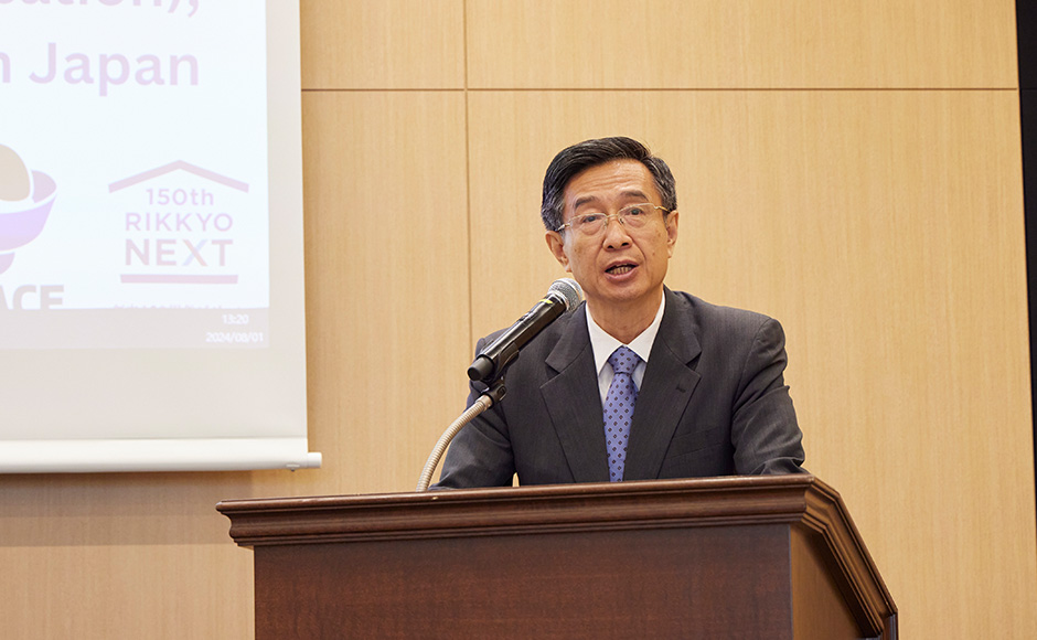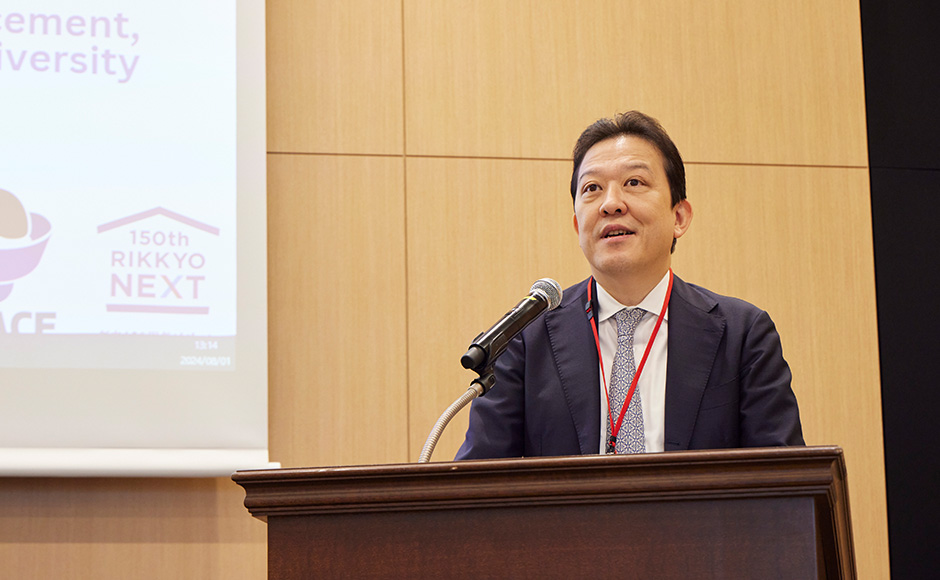 初日となる8月1日(木)は、赤坂インターシティコンファレンスにてオープニングセレモニーを開催。西原廉太総長、松井秀征国際化担当副総長のあいさつで始まり、来賓である駐日本国中華人民共和国公使参事官(教育)の杜柯偉(トカイ)氏、駐日本国大韓民国大使館教育官の梁鎬錫(ヤンホソク)氏から本学創立150周年への祝辞と本プログラムへのメッセージをいただきました。