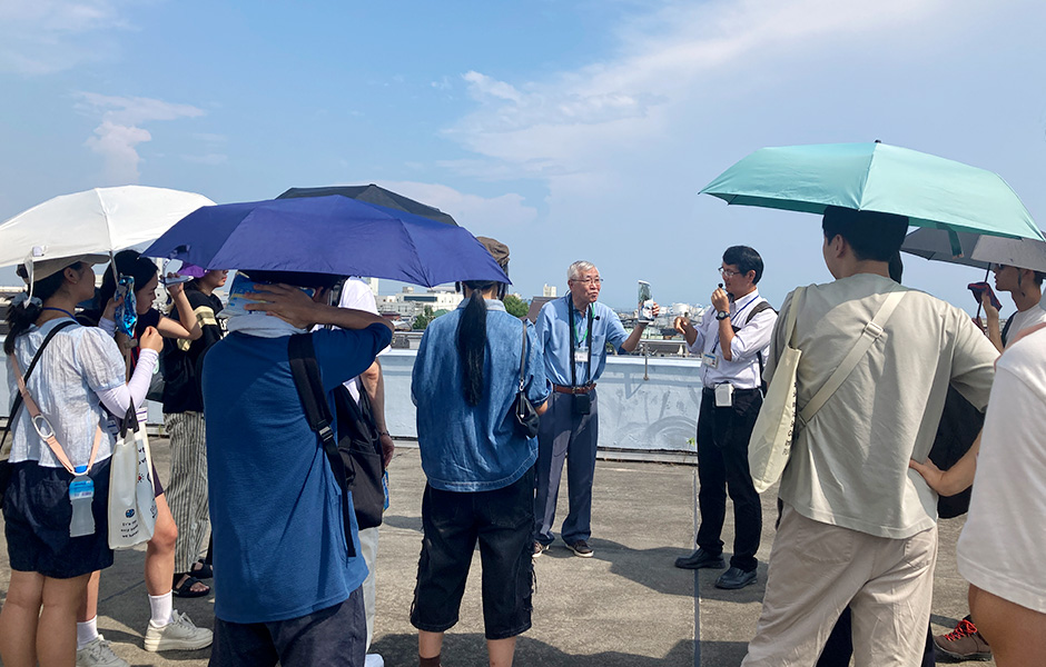 4日(日)は東京から神戸に移動し、翌5日(月)から神戸でのフィールドワークが本格的にスタート。午前は、防災・減災を専門とする兵庫県立大学大学院減災復興政策研究科・青田良介教授による講義。午後は、阪神・淡路大震災による壊滅から復興を遂げた神戸市長田区の大正筋商店街を散策しました。街はどのように再生したのか。どのような課題が残ったのか。学生たちはそれぞれの視点で観察し、多くの気付きを得る機会となりました。